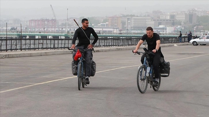 Fransa'da yaşayan Housnı Bedis (24) ve Boudia Sami (26) bisikletiyle bir hafta önce Kapıkule'den Türkiye'ye girdi.