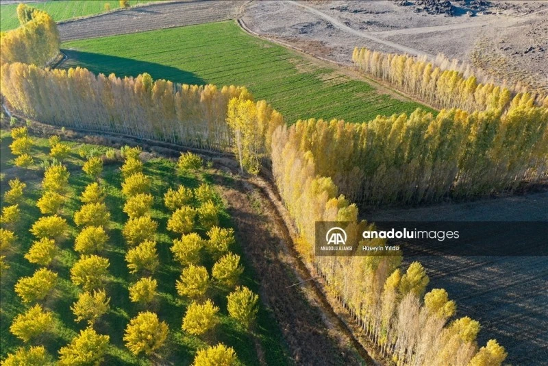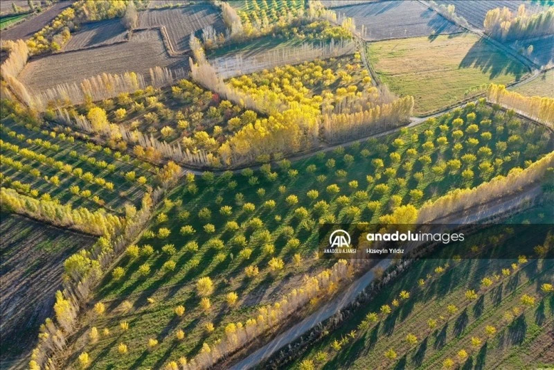 Iğdır'daki İrem Bağları'nda sonbahar renkleri dron ile görüntülendi