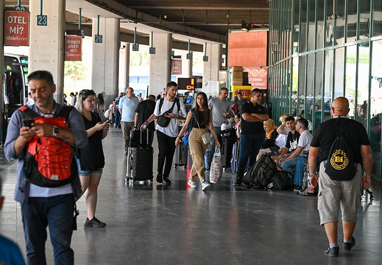 Bayram tatilinin 9 güne çıkarılmasının ardından memleketleri veya tatil bölgelerine seyahat edecek vatandaşlar, İzmir Şehirlerarası Otobüs Terminali'nde hareketliliğe sebep oldu.