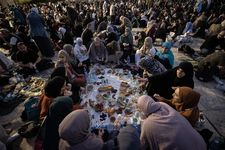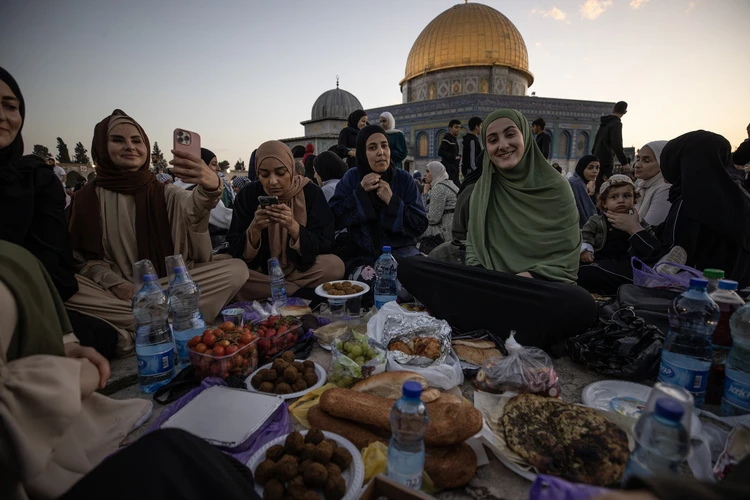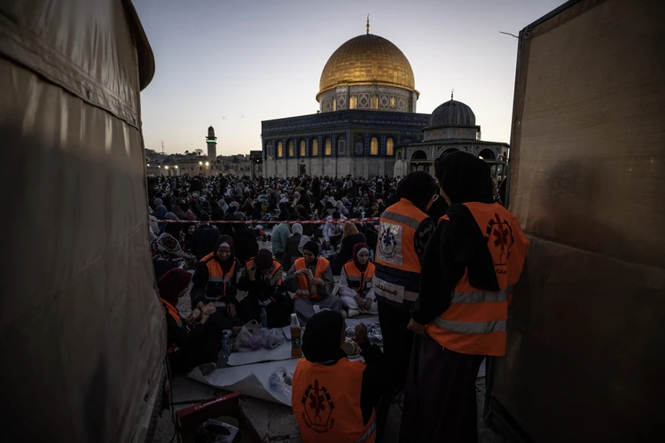 Binlerce Filistinli ve yabancı Müslüman, başı rahmet, ortası bereket, sonu bağışlanma olan ramazan ayını, her akşam İslam'ın ilk kıblesi Mescid-i Aksa'da oruç açıp ibadet ederek idrak ediyor.
