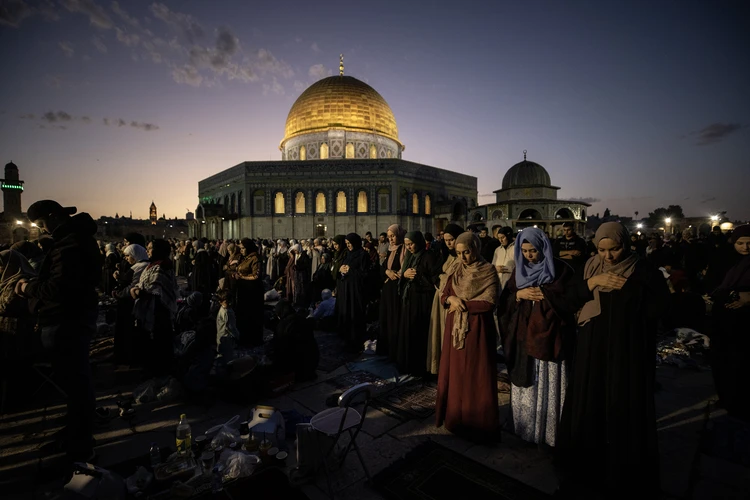İsrail, Batı Şeria'da yaşayan Filistinlilerden sadece kadınlar, küçük çocuklar ve yaşlı erkeklerin Mescid-i Aksa'ya gelmeleri için işgal altındaki Doğu Kudüs'e girişlerine izin veriyor.