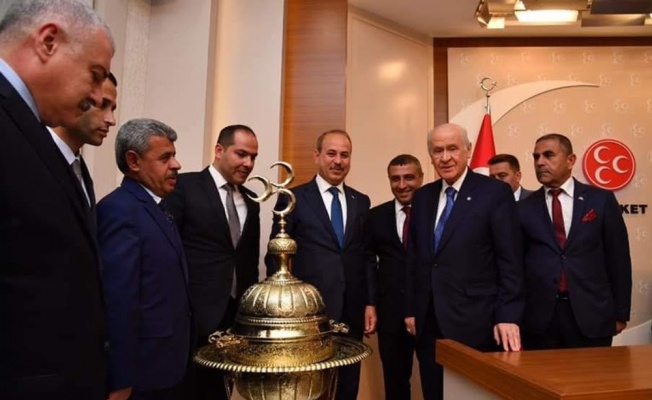 Oğuzeli Belediye Başkanı Mehmet Sait Kılıç, Milliyetçi Hareket Partisi Genel Başkanı Devlet Bahçeli’yi ziyaret eterek, "Paşa Mangalı" hediye etti.
