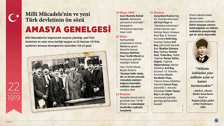 "Bu da ancak tam bağımsız olmakla sağlanabilir. Kurtuluşun parolası, 'Ya istiklal ya ölüm'dür artık. Milli Mücadele'nin yol haritası, Amasya Genelgesi'ndeki, 'Milletin istiklalini yine milletin azim ve kararı kurtaracaktır' cümlesiydi. Bu madde, yıkılan bir devletin yerine yeni bir devletin kurulacağının, milletin de dirildiğinin ilanı anlamına gelmektedir. Özellikle işgalin başladığı ilk günlerde İstanbul'da yaşanan siyasal depreme sebep olan ittihatçı/itilafçı çatışması ortadan kalkmış, millet bir bütün olarak tek bir hedefe doğru yürümeye başlamıştır. Çeşitli kurtuluş reçetelerinin yazıldığı bu dönemde Mustafa Kemal Paşa ve arkadaşları, kurtuluşun ve bağımsızlığın ancak ve ancak milletin azim ve kararı ile elde edileceğine işaret etmişlerdi. Böylece ülkenin kurtulabilmesi için milli egemenlikten başka bir yol olmadığının vurgulandığı yerdir Amasya. Ayrıca Amasya, bundan böyle demokratik ve ortak akla dayalı milli kararların alınacağının ilan edildiği yerdir."
