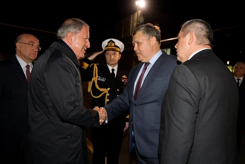 Milli Savunma Bakanı Hulusi Akar ve Milli İstihbarat Teşkilatı (MİT) Başkanı Hakan Fidan'ı taşıyan uçağı Vnukova Havalimanı'nda Rus yetkililerin yanı sıra Türkiye'nin Moskova Büyükelçisi Mehmet Samsar ve diğer yetkililer karşıladı.