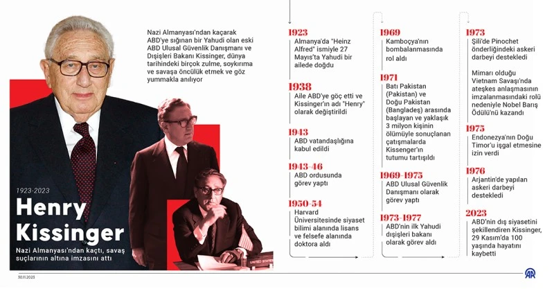 Dünya siyasetini şekillendiren tartışmalı kararlarıyla bilinen Kissinger, 1973'te Şili'de demokratik yollarla seçilmiş sosyalist hükümeti deviren Pinochet önderliğindeki askeri darbeyi destekledi. Endonezya'nın 1975'te Doğu Timor'u işgal etmesine izin verdiği, dönemin sonrasında gizliliği kaldırılan belgeleriyle ortaya çıktı.