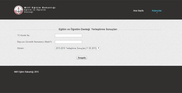 “Eğitim ve öğretim desteği almaya hak kazanan öğrenci, yerleştirildiği okula nakil ve kayıt işlemlerini belirtilen tarihlerde yapmadığı takdirde teşvik hakkını kaybedecektir. Boş kalan kontenjanlar için daha önce tercih işlemini yapan öğrenciler içerisinden 22 Eylül 2015 tarihinde Ek Yerleştirme Sonuçları ilan edilerek bu öğrencilerin kayıt işlemleri 22-30 Eylül 2015 tarihleri arasında gerçekleştirilecektir. Sonuçlara https://ookgm.meb.gov.tr ve https://meb.gov.tr/ adreslerinden ulaşılmaktadır.”