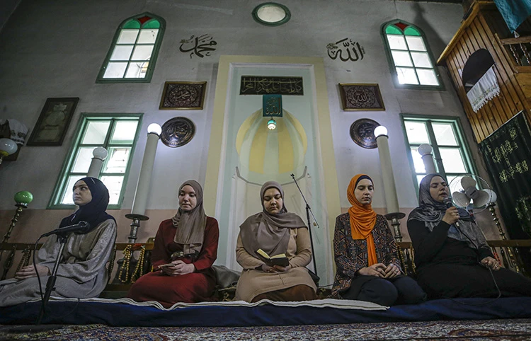 Saraybosna'daki Luzani Camisi'nde mektebe giden çocuklar mukabele okurken ülkede asırlardır korunan ramazan geleneklerinden kadınlar mukabelesi başkentteki Hacı Camisi'nde bu yıl da devam ediyor.
