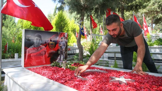 Çocuklarının mezar taşlarını temizleyen anneler, evlatlarının kabirleri başında dua etti. Türk bayraklarının dalgalandığı şehit mezarlarında bazen şehidin tuttuğu takımın atkısı bazen de arkadaşları tarafından bırakılan tespih, gözlük ve bileklikler yer aldı.