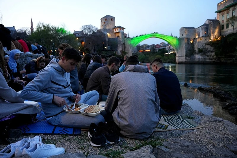 Bosna Hersek İslam Birliğince, "Ramazan Günleri" kapsamında organize edilen ve 1300 kişinin katıldığı iftar, Mostar Köprüsü'nün altından geçen Neretva Nehri kıyısındaki platoda yapıldı.
