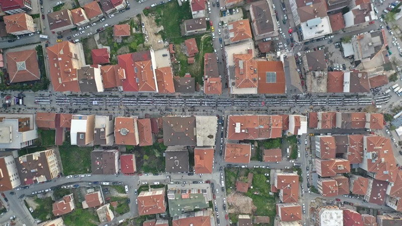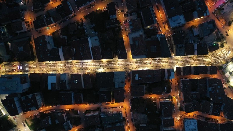 Ezanın okunması ile beraber caddeyi dolduran binlerce kişi iftar yaptı.