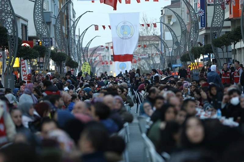 İlçenin en işlek yerlerinden Pınar Bulvarı'nda kurulan 5 bin kişilik iftar sofrasına vatandaşlar yoğun ilgi gösterdi.