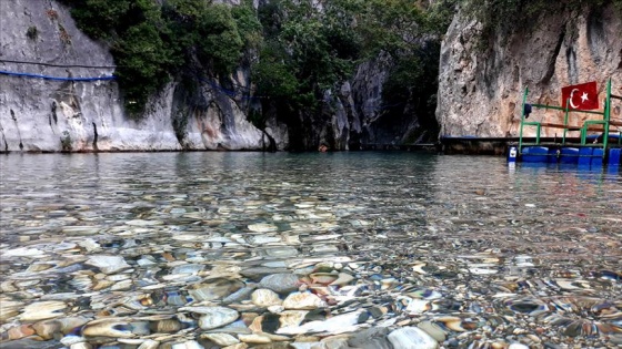Dağın eteklerinden doğan soğuk suya girerek serinleme şansı bulan ziyaretçiler, iki dağın birleştirdiği kanyon arasında sallarla da keyifli bir yolculuğa çıkıyor.