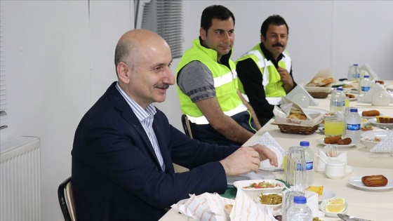 Bakan Karaismailoğlu, ezanın okunmasıyla işçilerle birlikte orucunu açtı.