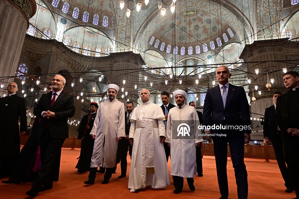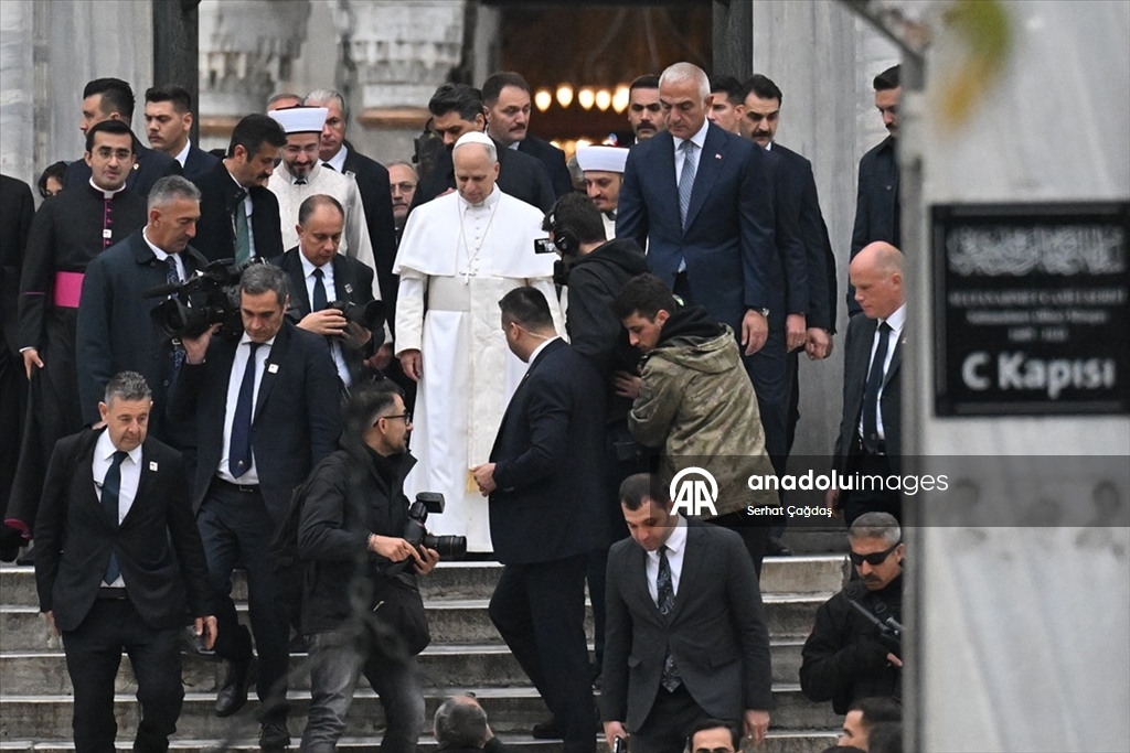 Türkiye ziyareti kapsamında İstanbul'da bulunan Papa 14. Leo ve beraberindeki heyet, Sultanahmet Camisi'ni gezdi.