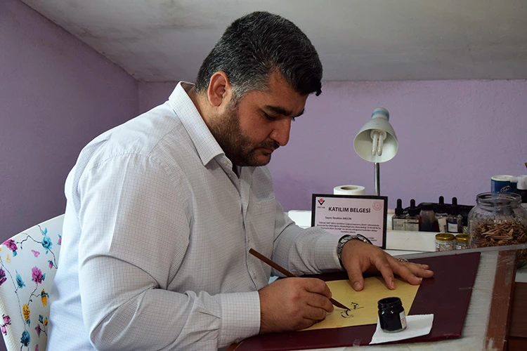 Kamış kalem, mürekkep, kağıt ve yardımcı malzemeleri özenle seçtiğini, bunları yılların tecrübesiyle kullandığını kaydeden Akgün, şunları söyledi:
