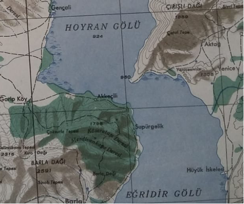 Bugün için Eğirdir Gölü denilen göl, 1530 tarihli defterlere göre Eğirdir ve Hoyran olmak üzere iki ayrı göldü ve iki göl arasında suları Hoyran’dan Eğirdir’e [kuzeyden güneye] doğru akan, ağzı kaynağına yakın [seyri kısa], derin, suyu bol bir ırmak vardı. Sardes’ten gelen Anayol [Kıral Yolu], bu ırmağı Kemer Boğazı’nda Yeñice-köyü köprüsünden geçerek Susa’ya gidiyordu. Köprü şarkında 1568 tarihli, Eğirdir Yörüklerinden Celâlî Karamanlısı 14 kişi tarafından onarılan Afşar kz., Yeñice Derbendi vardı. 1501 tarihli bir deftere göre, Afşar kz., Maziye [Marsia] karyesi, Firigos Boğazı’nda 500 [akçe] gemi hâsılı vardı. Beyşehir Gölü de, Kıreli ve Beyşehir gibi iki ayrı göldü. Pîrî Reis ve Kâtip Çelebi haritaları, coğrafî değişimi tasdik ediyorlardı. Firigos Boğazı, Kemer Boğazı idi [bk. Har.2, Har.3].