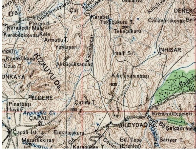 06. Homa’ya gelen Manuel’in Düzbel, Kartı, Pınarbaşı, Çapalı ve Uluborlu gibi yürüdüğü düşünülebilir. Nitekim Çay öyle düşünmüş, ama Manuel’i Kartı’dan sonra Çapalı ve Uluborlu’dan yürüteceği yerde, Çölovası’ndan yürütmüştür. Manuel’in Işıklı ve Kûfi vâdisinden yürümesi hiçbir kaynağa uymaz. Kûfi vâdisi, Khoniates’in vâdi tasvirinin, yanlış çevirisine dayanan akla ziyan bir iddiadır [bk. Şekil 1-2].
