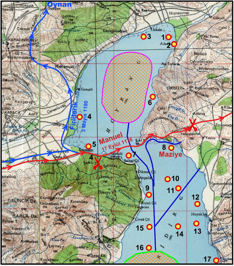 Har.4: HGM. 1944. 16-17 Eylül 1176 Manuel Komnenos ve 2-3 May. 1190 Friderik Barbarossa’nın yürüyüşleri.