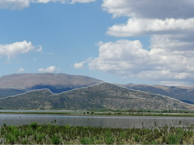 R.5: Eğirdir Gölü, 21 Eylül 2025’de Hoyran [sol] ve Eğirdir [sağ] olmak üzere tekrar ikiye ayrıldı. Karşıda Galesion, Sigriane, Athos, Killene, Dindymon ve Troad gibi birçok adı kaydedilen Çirişli Dağı görülüyor. Sağdaki tepe ise, Kelainai hisarı, Cybrilcymani, Tzybritzi, Sybrize, Sivrisi [Sivrice], Didymai, Bet-Toman ve Pion Tepe gibi adları kaydedilen iki tepeli [1186 Keçi Sivrisi, 1304 Büyük Sivri] Yenicesivrisi’dir.