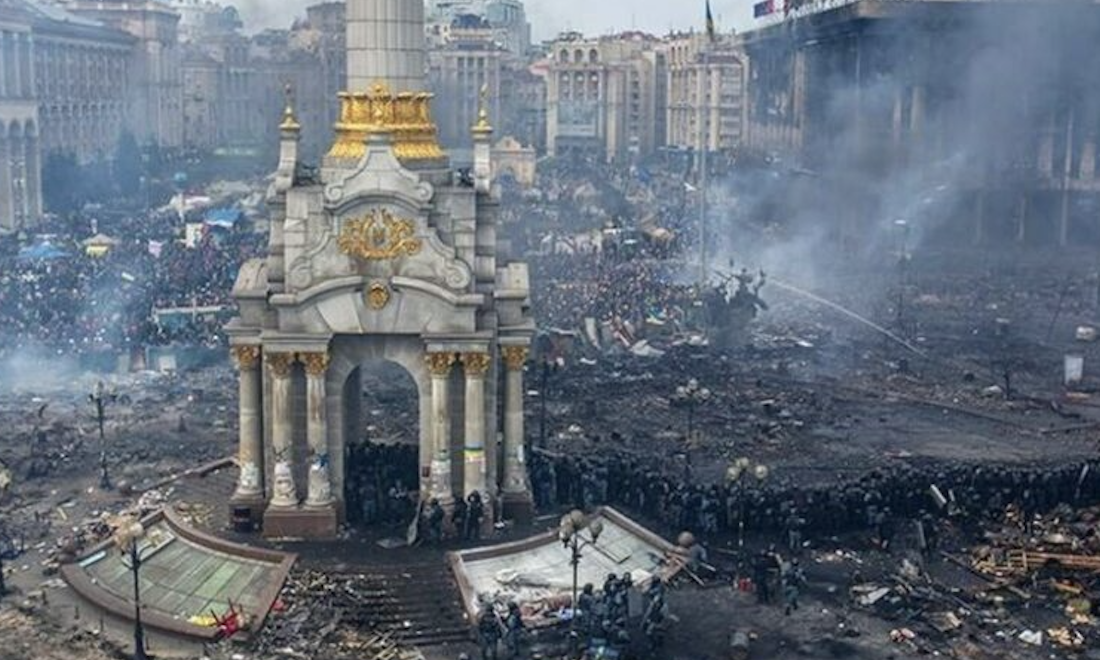 -Ukrayna'da protestocular, 2014'te Kiev'deki Maidan Nezalezhnosti'de hükümet güçleriyle çatışarak protestolarda bulunmuştu
